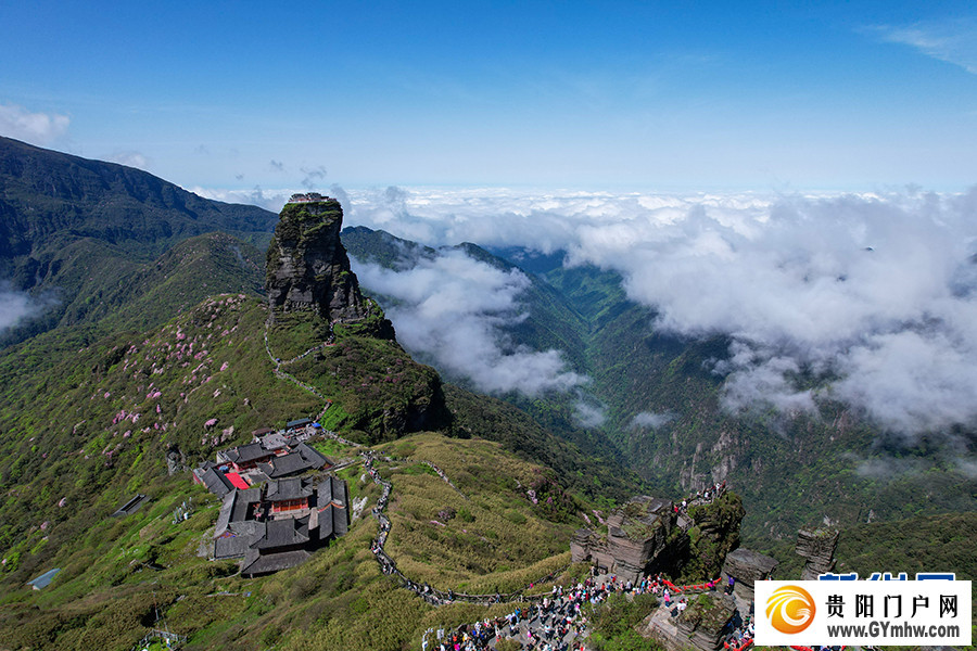 5月5日,俯瞰世界自然遗产地梵净山景区杜鹃花海美景。新华网发(李鹤 摄)